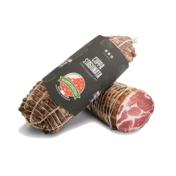 Strolghino al Parmigiano Reggiano — нежная традиционная салями из Пармы, приготовленная из отборного мяса и натуральных обрезов выдержанного Пармиджано Реджано. Это деликатес с мягкой текстурой и тонким благородным ароматом, который высоко ценится в Эмилия-Романья.