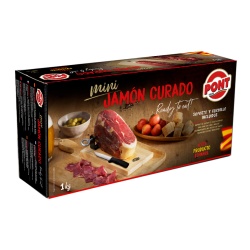 Испанский утиный хамон (Jamon de Pato) — 50 г — деликатес из утиной ветчины, выдержанной в испанской традиции. Предлагает насыщенный и слегка сладковато-дымный вкус с характерной утиной полнотой.
