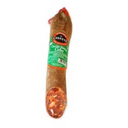 Чоризо – это рубленное мясо из отборной свинины высшего сорта, дополненное морской солью, черным перцем, чесноком и сахаром. Продукт имеет натуральную оболочку. В процессе приготовления мясной деликатес проходит долгий процесс сушки и созревания. Готовая колбаса имеет характерный красный оттенок, особый аромат и вкус. На срезе рубленное мясо имеет особый блеск, благодаря жировым прослойкам.
