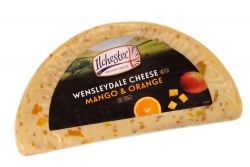 Английский сыр Wensleydale с манго и апельсином — ароматный десертный сыр с яркой фруктовой сладостью. Производится из коровьего молока и отличается нежной, сливочной консистенцией, дополненной кусочками сочного манго и цитрусовыми нотами апельсина.