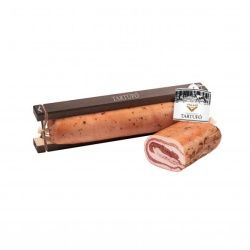 Только лучшее сырье для продукта очень высокого качества: очищенная от кожи и обезжиренная свиная лопатка, горла для сала и хлопья ценного летнего трюфеля. Аппетитность мортаделлы сочетается с ароматом трюфеля, образуя смесь вкусов, удовлетворяющую самые изысканные вкусы.